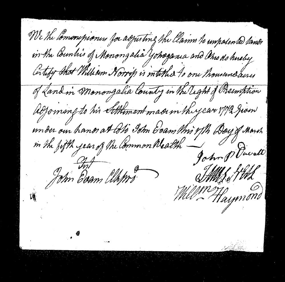 Sam Norris married a Full-Blooded Lenape Delaware woman named Pretty Hair (Welahukwe), who was born in Grafton.--also according to the Draper Manuscripts and the Horn Papers there were Delaware living in the Morgantown region at this time.